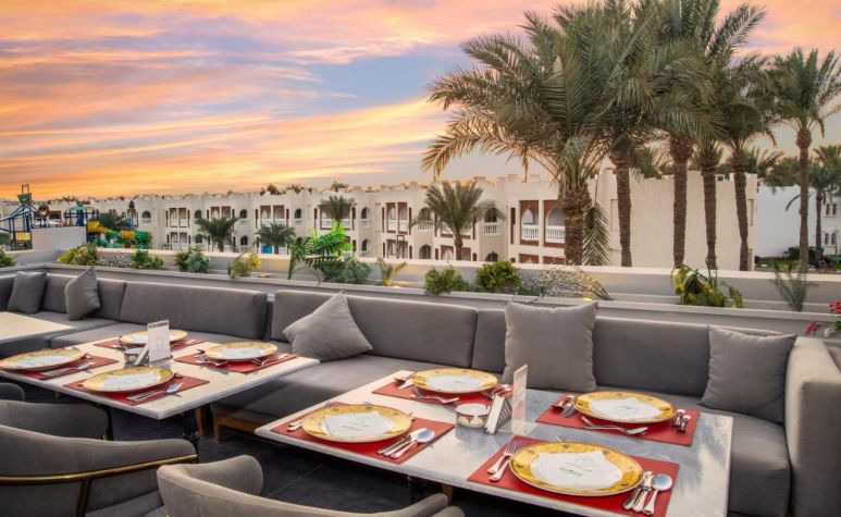 Основен ресторант, 5 а-ла-карт ресторанта (италиански, египетски, индийски, монголски, морски-платен), 13 бара, 3 открити басейна (отопляем през зимата), 1 открит басейн само за възрастни (отопляем през зимата), 8 водни пързалки за възрастни и 4 за деца, дневна и вечерна анимация, музика на живо, амфитеатър, магазин за сувенири, банкомат, денонощна рецепция, СПА център.