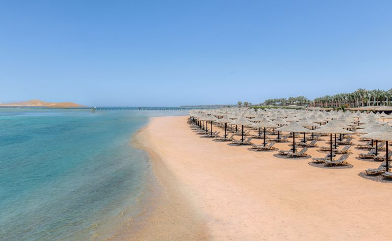 Собствен, пясъчен, с лагуна и кей. Гостите ползват плажа и бара към него на хотел JAZ Mirable Beach. Чадъри и шезлонги на плажа и при басейна - безплатно. Плажни кърпи - безплатно.