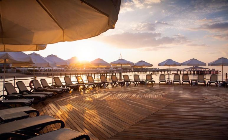 ПЛАЖ: Собствен, пясъчен. Чадъри, шезлонги и матраци на плажа и при басейна – безплатно, плажни кърпи – безплатно.