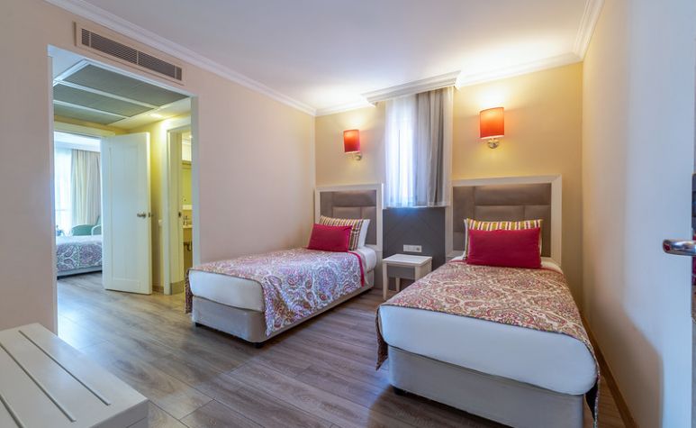 Хотелът разполага с общо 379 стаи, разположени в две основни сгради, от които 158 Standard Land View Room (изглед суша - 28 м2), 103 Standard Room Side Sea View Room (частичен изглед море - 28 м2), 44 Standard Sea View Room (изглед море - 28 м2), 74 Family Room (2 спални,1 баня - 35 м2).