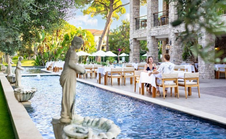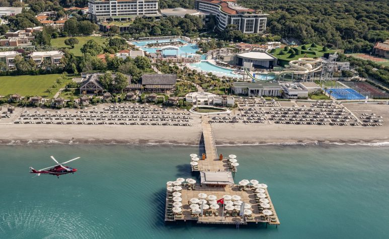 Основен ресторант, 7 а-ла-карт ресторанта (с предварителна резервация), 12 бара, дискотека, 3 открити и 2 закрити басейна, аквапарк с 5 водни пързалки, магазини, Спа - център, амфитеатър, кино, 8 конферентни зали. За децата: Детски ресторант, детска площадка, бебешки клуб (1-2 г.), мини клуб (3-7 г.), джуниър клуб (8-12 г.), тийн клуб (13-17 г.), 3 детски басейна, парк, детска дискотека. Безплатни услуги: Турска баня, сауна, фитнес, дартс, билярд, тенис на маса, тенис на корт, плажен волейбол, баскетбол, футбол, аеробика, мини-голф, безмоторни водни спортове, уроци по танци, кино, анимация, интернет. Платени услуги: Масажи, козметични услуги, фризьор, магазини, боулинг, видеоигри, арт студио, лекар, моторни водни спортове, уроци по голф, уроци по тенис, осветление за тенис кортовете.