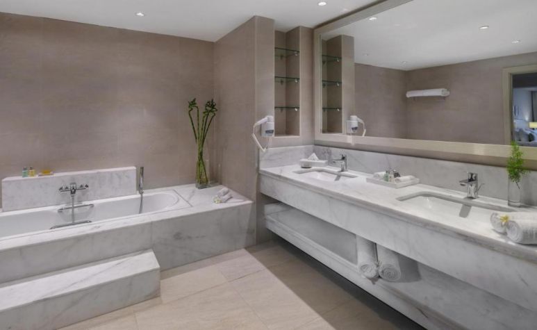 Всички стаи са климатизирани и имат просторен балкон или тераса. Всяко помещение включва плоскоекранен телевизор и кът за сядане. Срещу допълнително заплащане гостите могат да използват минибара. Осигурени са също удобства за приготвяне на чай/кафе и сейф.