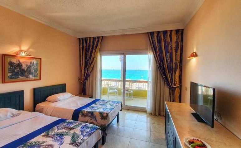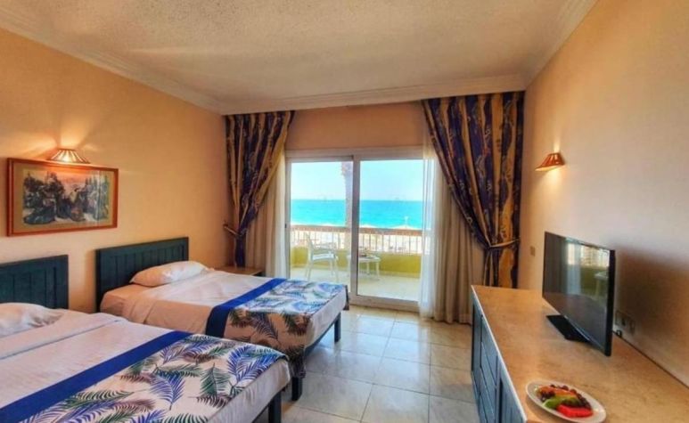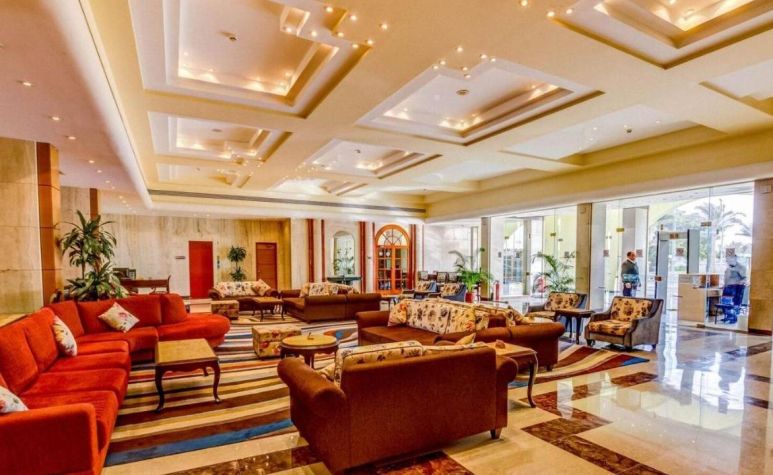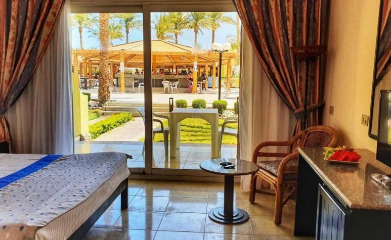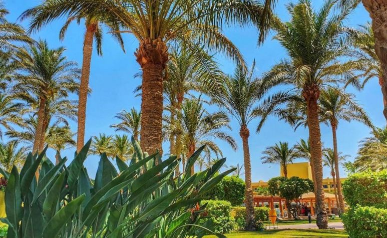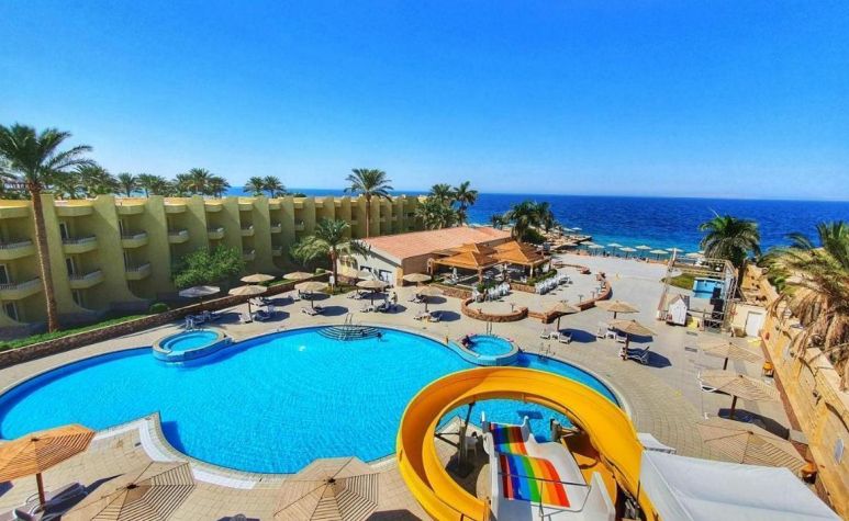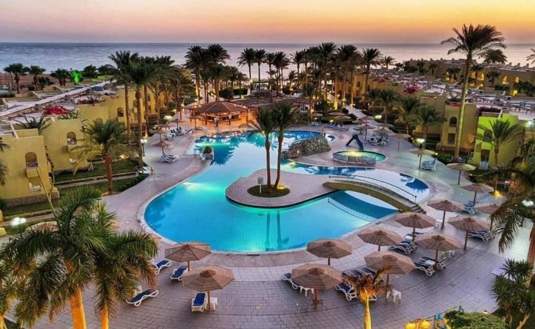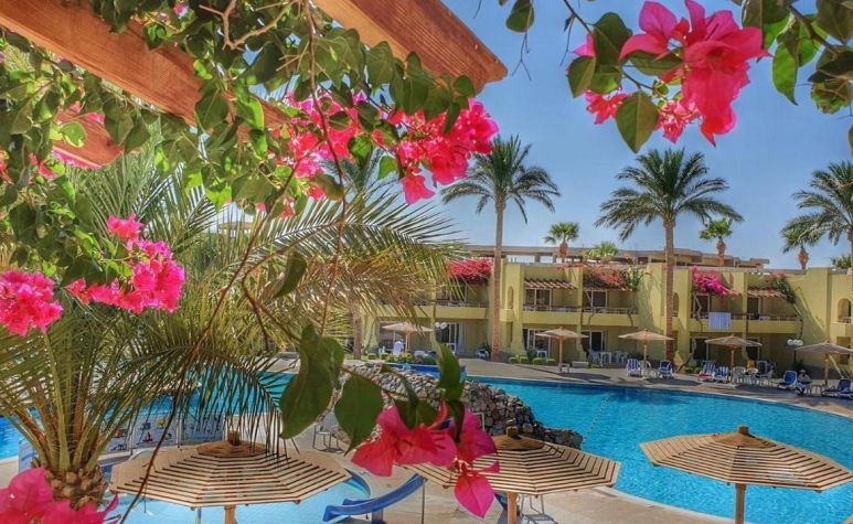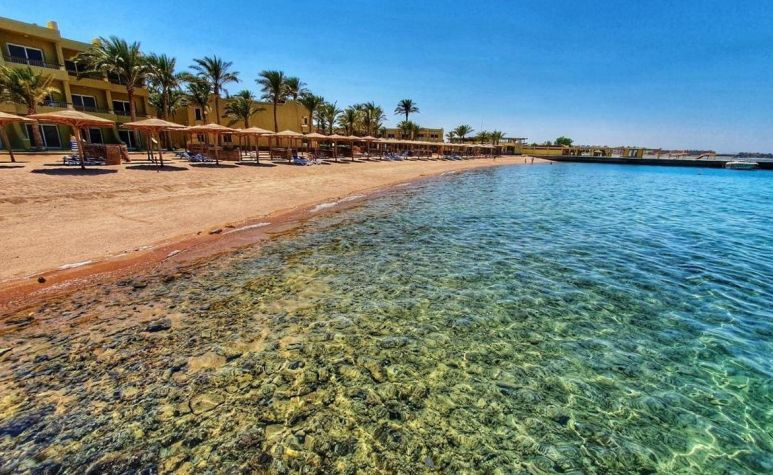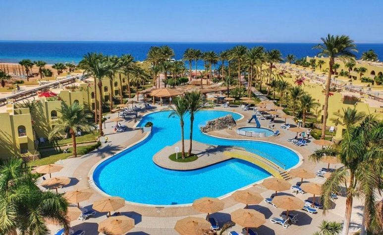 Palm Beach Resort 4* е обзаведен в модерен стил, а обстановката и атмосферата са традиционни за Египет. Хотелът разполага с прекрасни гледки към Червено море, с 2 басейна, собствен пясъчен плаж и клуб по гмуркане. Гостите на хотела имат на разположение още: ресторант с международна кухня, бар с напитки и леки закуски, релаксиращи масажи, сауна и фитнес, екип от аниматори, организиращи различни занимания и игри през целия ден. Центърът по гмуркане - The Caves, предлага различен тип водни спортове, като гмуркане, шнорхелинг и уиндсърф.