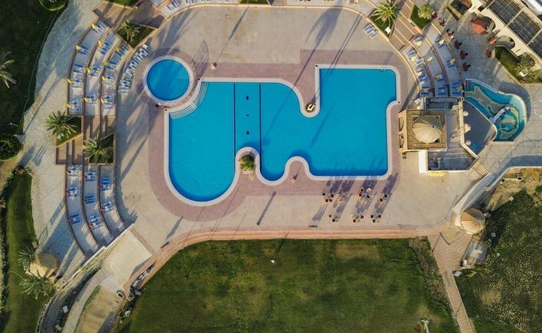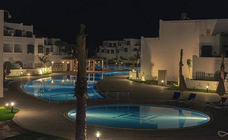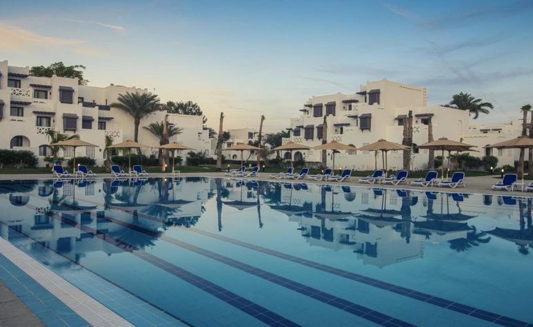 Намира се на 8 км. от летище Хургада, на 12 км. от центъра на Хургада, на брега на морето.
