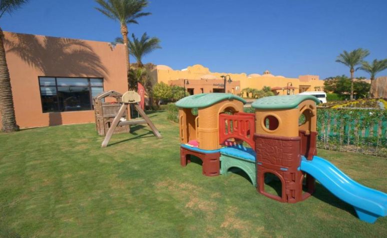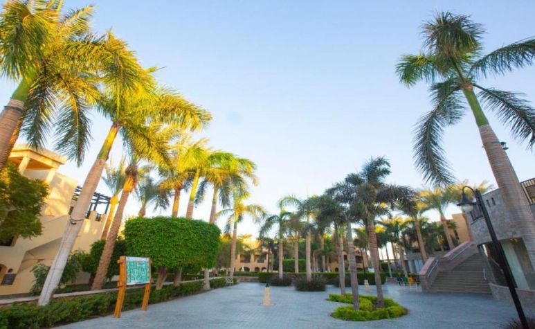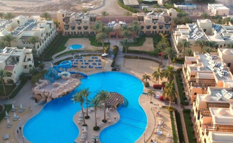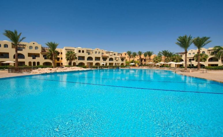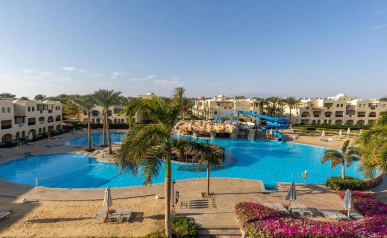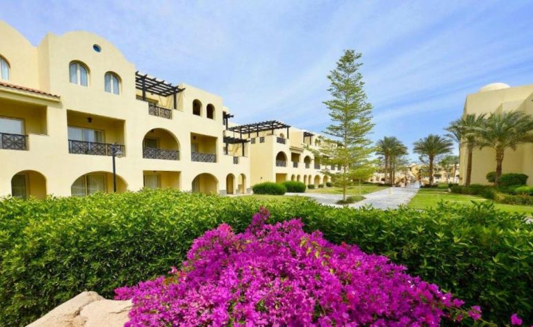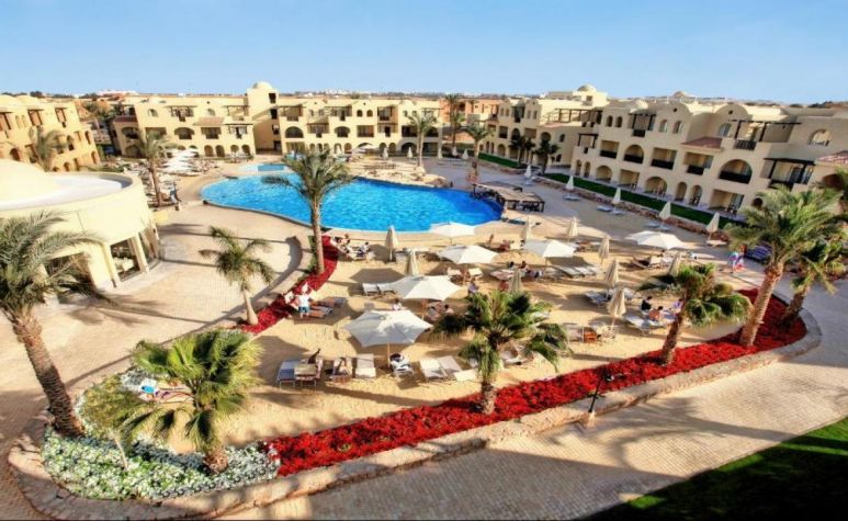 Stella Gardens Resort and Spa се намира в живописния и спокоен район Макади Бей, на около 35 км южно от международното летище в Хургада и на около 40 км от центъра на града. Хотелът е част от големия комплекс Stella Di Mare и предлага достъп до частен плаж чрез вътрешен път или шатъл. Разположението му осигурява тишина, спокойствие и отлична възможност за пълноценна почивка в близост до морето и рифовете на Червено море. Построен през 2011 г., реновиран през 2014 г.