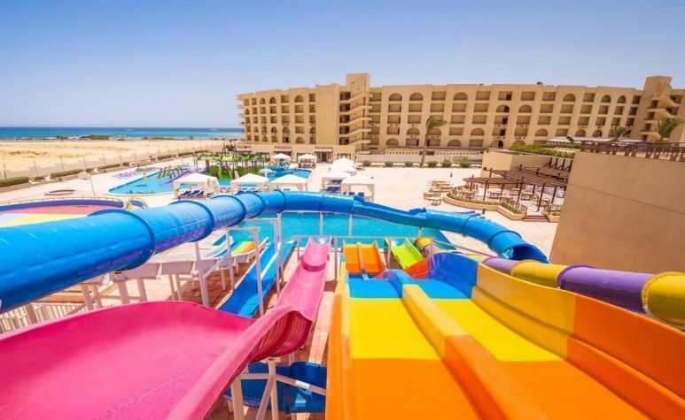 Sunny Days El Palacio предлага автентична ориенталска архитектура, просторна територия, частен плаж, лагуна и мост, водещ към малък остров. Хотелът разполага с открити басейни, аквапарк зона за деца, основен ресторант, тематични ресторанти, барове, амфитеатър, СПА център и търговски обекти.
