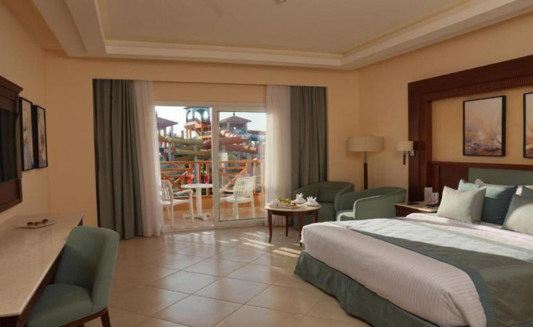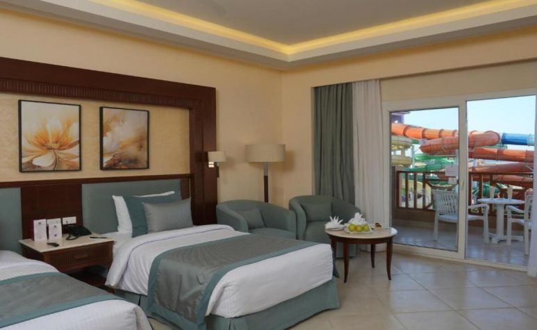 Хотелът предлага настаняване в просторни и функционални стаи с гледка към градината, басейна или аквапарка. Всяка стая разполага с