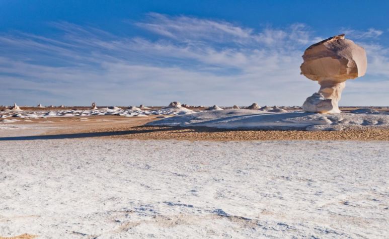 Закуска. Ще имате възможност да се насладите на целодневно посещение на Бялата пустиня, наслаждавайки се на приятна разходка в Бялата пустиня през очарователните бели варовикови скали. Бялата пустиня е национален парк, най-известната пустинна дестинация в Египет.
