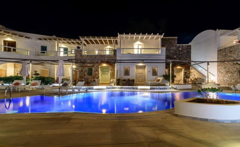 Хотелският комплекс се намира на 8 километра от столицата на остров Санторини – Фира, а летището е на 4 километра от хотела. Комплексът е изграден с цел да осигури максимална почивка и комфорт на своите гости и разполага с много удобства и модерни съоръжения. Комплексът е с концепция: