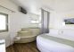 Някои от стаите са с гледка към морето, а други с гледка към градините на хотела.