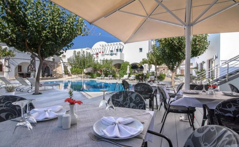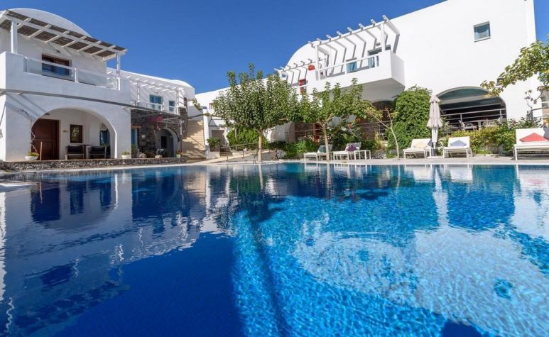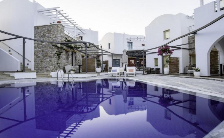 Хотелският комплекс се намира на 8 километра от столицата на остров Санторини – Фира, а летището е на 4 километра от хотела. Комплексът е изграден с цел да осигури максимална почивка и комфорт на своите гости и разполага с много удобства и модерни съоръжения. Комплексът е с концепция: