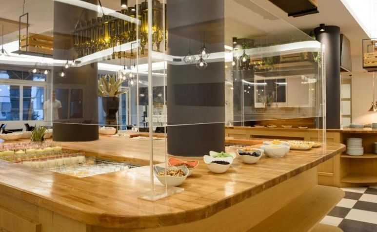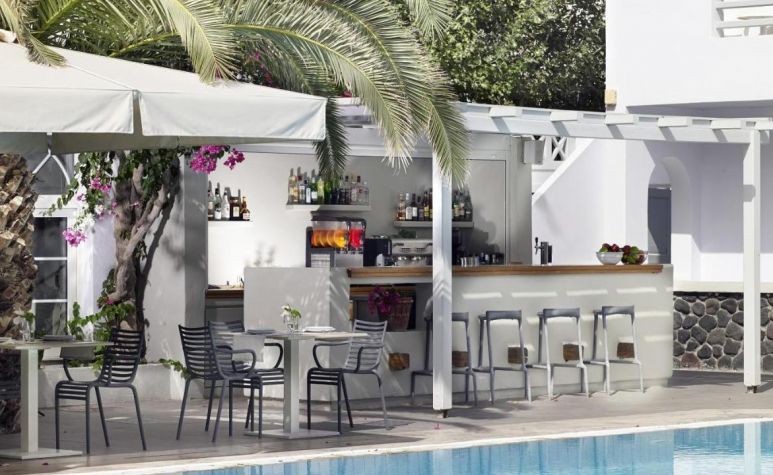 Мястото, където гастрономическият опит на Санторини е по-добър. Нашият модерен, просторен и климатизиран основен ресторант, с вътрешна и външна зона за сядане с растения бугенвилия, се намира до басейна. За закуска на нашите гости се предлага богат избор от традиционна средиземноморска и международна кухня на шведска маса.
