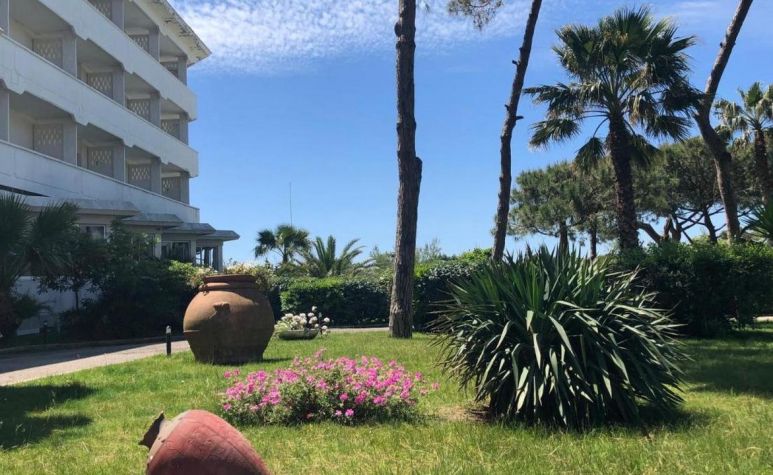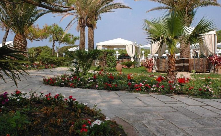 Domizia Palace 4* се намира в италианския курорт Бая Домиция, на първа линия до плажа на залива Гаета, заобиколен от борова гора. Комплексът е разположен сред красиви градини с палми, средиземноморски кипариси и диви цветя, даващи усещането за спокойствие и релакс.