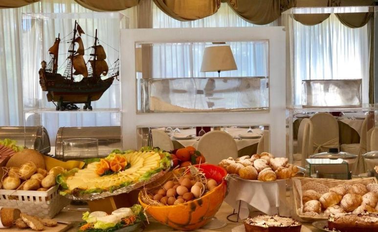 - Хотелът предлага нова концепция за вечерята чрез поръчка на място в ресторанта, като тя се приготвя на момента и изисква съответното технологично време. Организира се със сервиране и включва предястие и основно, а салатите и десертът са на блок маса.