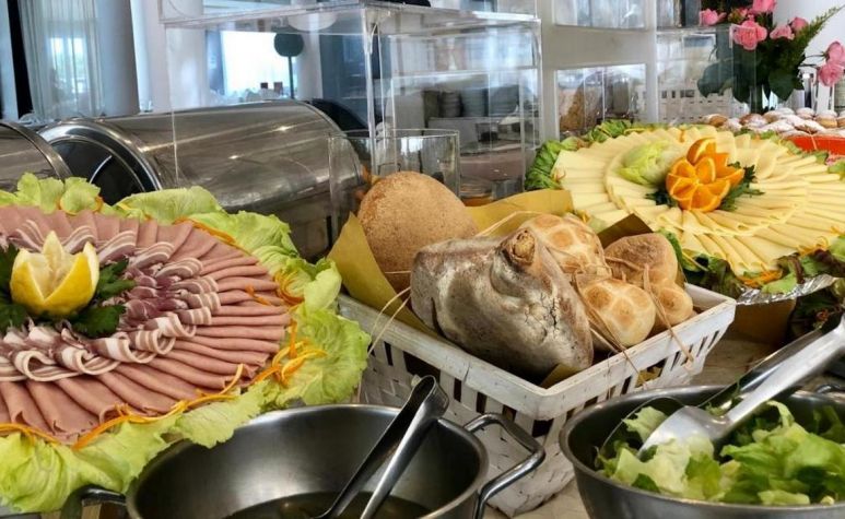 - Обядът се заявява предварително или на място на рецепция. Организира се със сервиране – предястие и основно, а салатите и десертът са на блок маса.