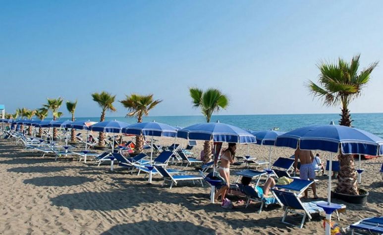 Плажната ивица се разпростира на 340 м и се намира на 50м. oт селището. Достъпът до плажа е свободен, където за всяко помещение за настаняване има чадър и шезлонг.Кафенето, баните и душовете са в близост до плажа. Спасителите са на плажа по цял ден за безопасността на гостите.