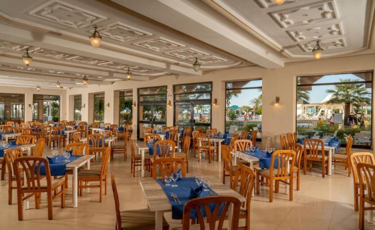 - Предлага интернационална кухня с местни тунизийски акценти