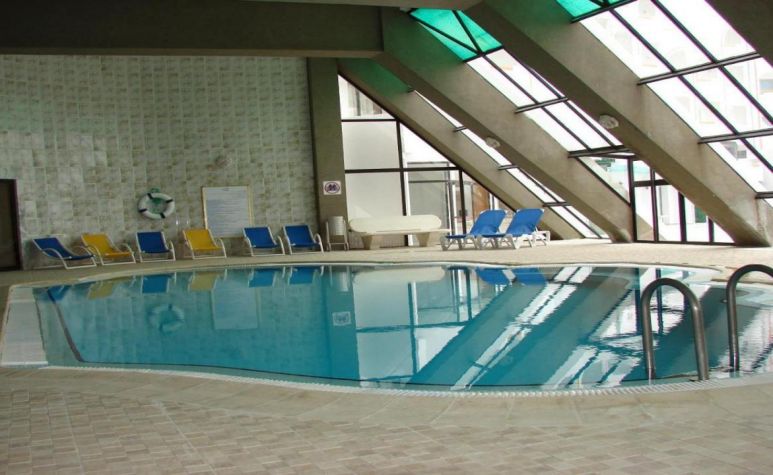 - Открит басейн с шезлонги и чадъри
