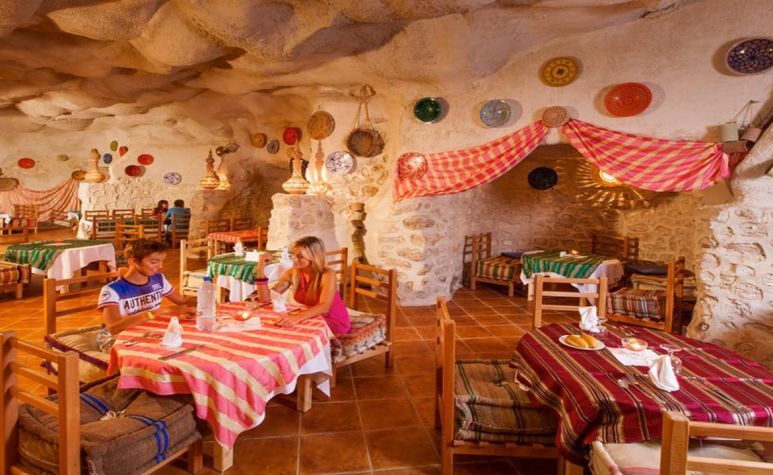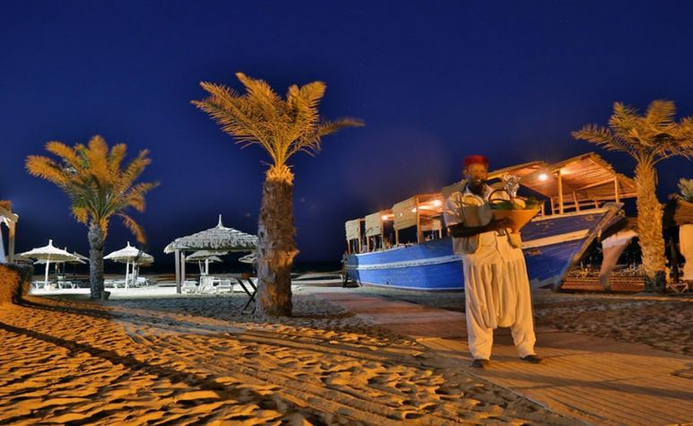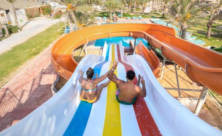 Основен ресторант, 2 а-ла-карт ресторанта (тунизийски и марокански – срещу заплащане/с предварителна резервация, съгласно концепцията на хотела/1 безплатно посещение на 1 от ресторантите при минимум 7 нощувки), 3 бара, мавританско кафене (срещу заплащане), открит басейн, 3 водни пързалки, закрит басейн (от 01.11 до 31.03), закрит басейн с морска вода в Таласо центъра (срещу заплащане), 2 конферентни зали и заседателна зала, магазин, обмяна на валута, денонощна рецепция, Таласо център.