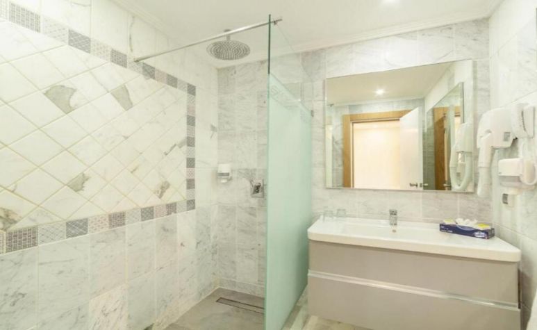 • Фамилна стая - 76 м2, максимално настаняване 4 възрастни + 1 дете, спалня + разтегателн диван, климатик, сейф, мини бар, Wi-Fi, мини бар, вана и душ, балкон.