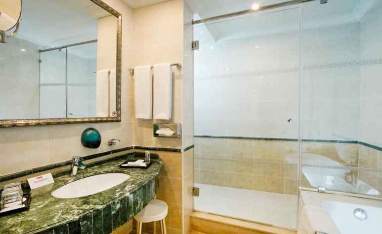 - баня с душ или вана, сешоар, тоалетни принадлежности