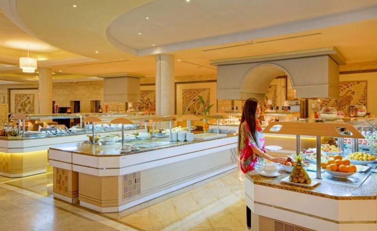- Предлага закуска, обяд и вечеря с разнообразие от международна и местна кухня. Тематични вечери се организират редовно.