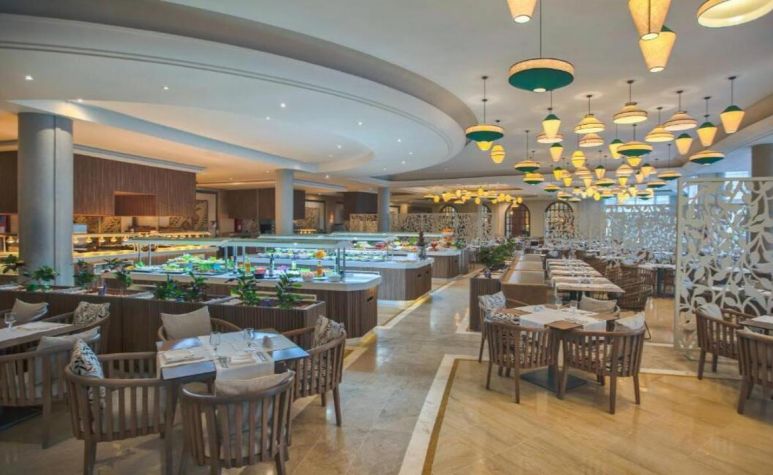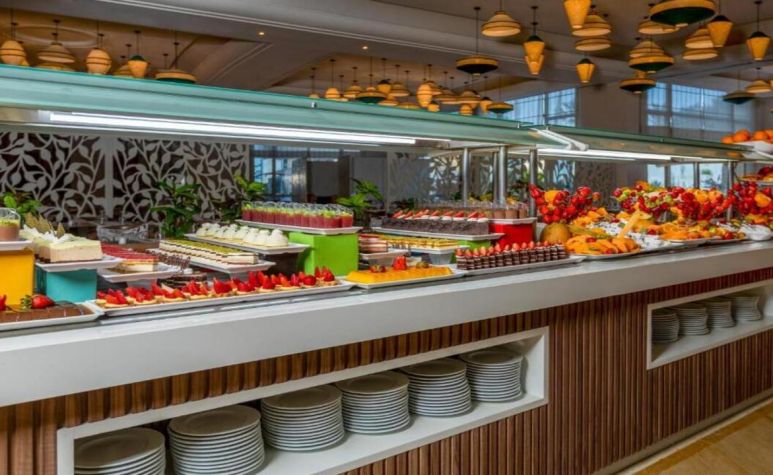 - Предлага закуска, обяд и вечеря с разнообразие от международна и местна кухня. Тематични вечери се организират редовно.