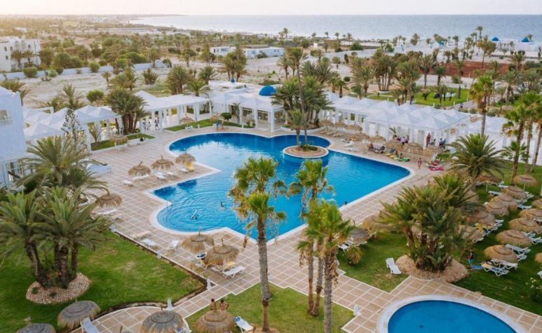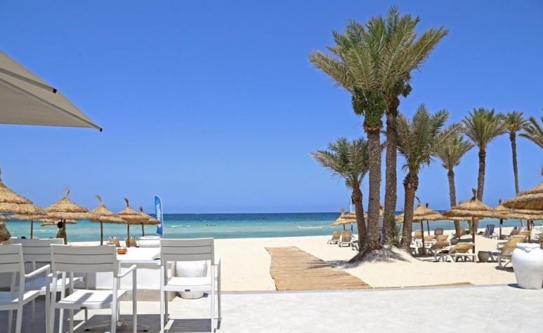 Намира се на 5 км от Мидун, на 18 км от Хумт Сук и на 27 км от летището, на брега на морето, до красивия плаж с бял пясък Сиди Марез. Последната реновация на стаите е от 2019 год.