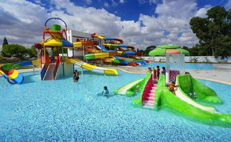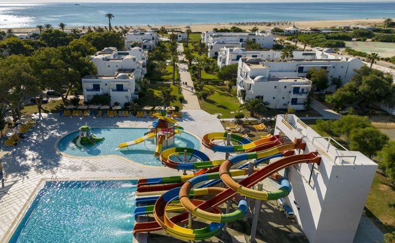 Основен ресторант, лоби бар, бар при басейна, бар при водните пързалки, бар и ресторат на плажа (срещу заплащане), мавританско кафене(срещу заплащане), СПА център, анимация, външен басейн, воден парк с 6 водни пързалки за възрастни и 2 водни пързалки за деца (10:30 – 12:30 часа, 14:30 – 17:30 часа), 24 часова рецепция, сувенирен магазин, обмяна на валута, конферентна зала.