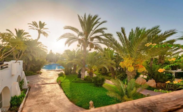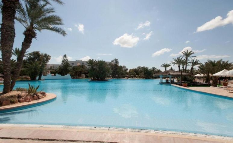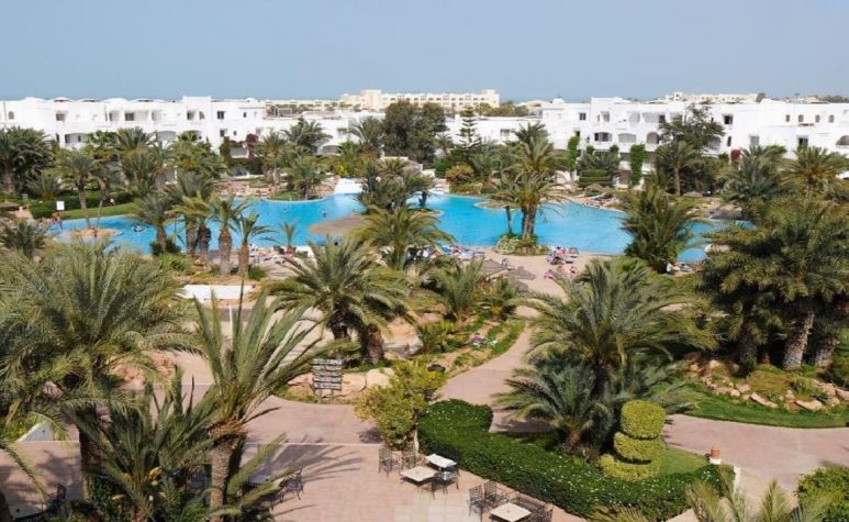 Djerba Resort е разположен в туристическата зона на остров Джерба – Midoun, на около 400 метра от плажа и 20 км от международното летище. Хотелът се намира сред зелени площи и градини, в близост до магазини и ресторанти, и предлага лесен достъп до град Houmt Souk (13 км). Районът е спокоен и подходящ за семейства и почивка.