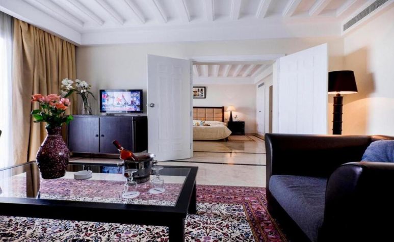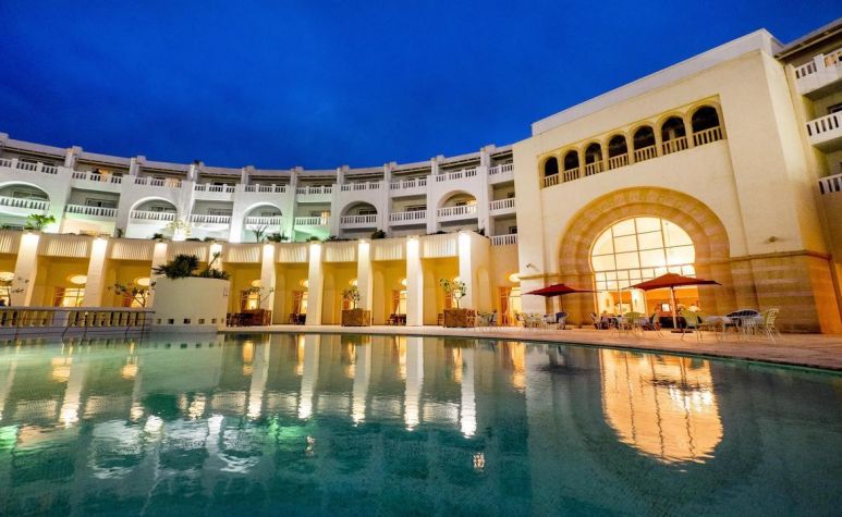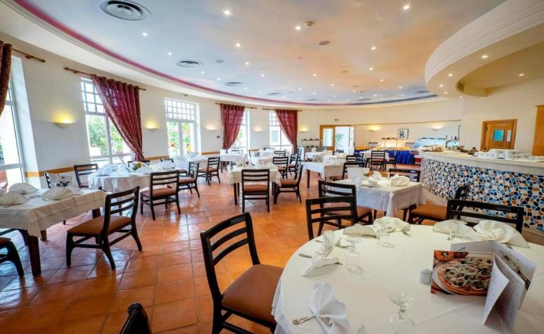 Основен ресторант OBlu, 4 тематични а ла карт ресторанта, всеки от които може да бъде посетен безплатно веднъж по време на престой след предварителна резервация (в хотел Medina Belisaire & Thalasso със средиземноморска кухня, в хотел Medina Diar Lemdina с мароканска кухня, в хотел Medina Solaria & Thalasso с италианска кухня, в ресторант Shaherezade” в хотел Medina Diar Lemdina с тематична вечеря 1001 нощи), снек ресторант, лоби бар, бар басейн, плажен бар, мавританско кафене, външен басейн, закрит басейн, денонощна рецепция, 5 конферентни зали, Таласо център, обмяна на валута, анимация.
