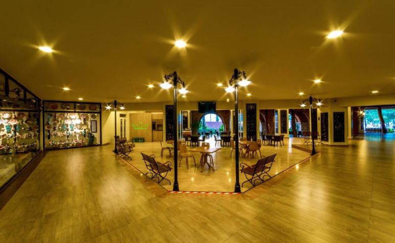 Основен ресторант, 3 а-ла-карт ресторанта (италиански, турски, рибен - срещу заплащане), 4 бара, 2 открити и 1 закрит басейн, магазини, СПА център, 3 конферентни зали, паркинг. За децата: Детски басейн с водни пързалки, детска площадка, мини клуб (4-12 г.), мини баскетбол, мини голф, анимация. Безплатни услуги: Сауна, турска баня , плажен волейбол, мини баскетбол, мини футбол, тенис на маса (срещу депозит), мини голф(срещу депозит), бочиа, дартс, анимация, WI-FI интернет в лоби. Платени услуги: Масажи, фризьор, детегледачка, пералня, химическо чистене, тенис на корт, билярд, водни спортове. ПЛАЖ: Собствен, платформа – чадъри и шезлонги на плажа и при басейна – безплано, плажни кърпи – безплатно.