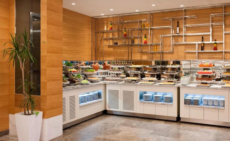 Основен ресторант, 1 италиански а-ла-карт ресторант (срещу заплащане), 3 бара, открит басейн, СПА център, конферентна зала. Безплатни услуги: Сауна, турска баня, парна баня , фитнес, тенис на маса, билярд, WI-FI интернет. Платени услуги: Масаж, фризьор, пералня, химическо чистене. Плаж: Собствен, 40 м. от хотела – чадъри, шезлонги и плажни кърпи на плажа и при басейна – безплатно.