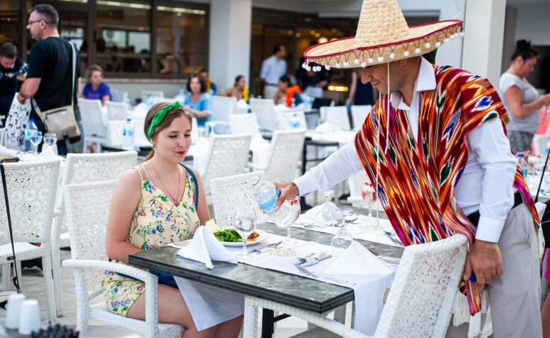 2 основни ресторанта (вътрешен с капацитет 100 места, външен с капацитет 400 места), а-ла-карт ресторант, 4 бара - LA ESQUINA CAFE, POOL BAR, TERRACE BAR, SNACK BAR, 2 открити басейна (880 cm. x 1330 cm. и 800 cm. x 1800 cm.), 1 закрит басейн, СПА център. За децата: Детски басейн. Безплатни услуги: Сауна, турска баня, фитнес, дартс, табла, жива музика, анимация, интернет(в лоби). Платени услуги: Масаж, пилинг, джакузи, парна баня, водни спортове, детегледачка, пералня, химическо чистене, лекар, водни спортове Плаж: Собствен, пясъчен – чадъри и шезлонги на плажа и при басейна – безплатно, плажни кърпи – безплатно, при смяна – срещу заплащане.