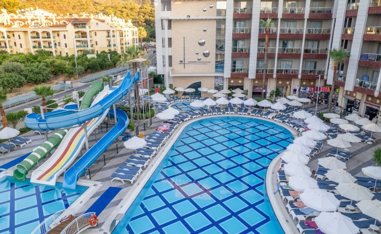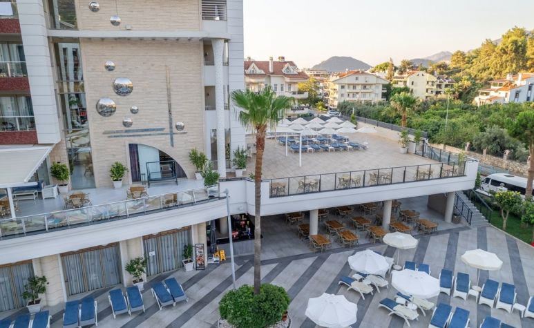 На 137км от летище Милас, на 99км от летище Даламан, На 3.5 км. от центъра на Мармарис, на 300 м. от морския бряг.