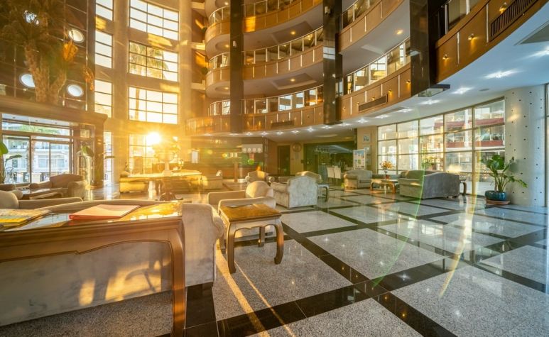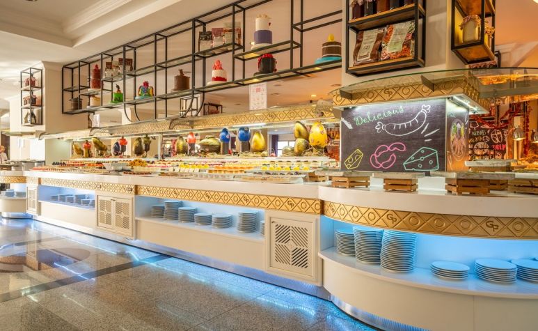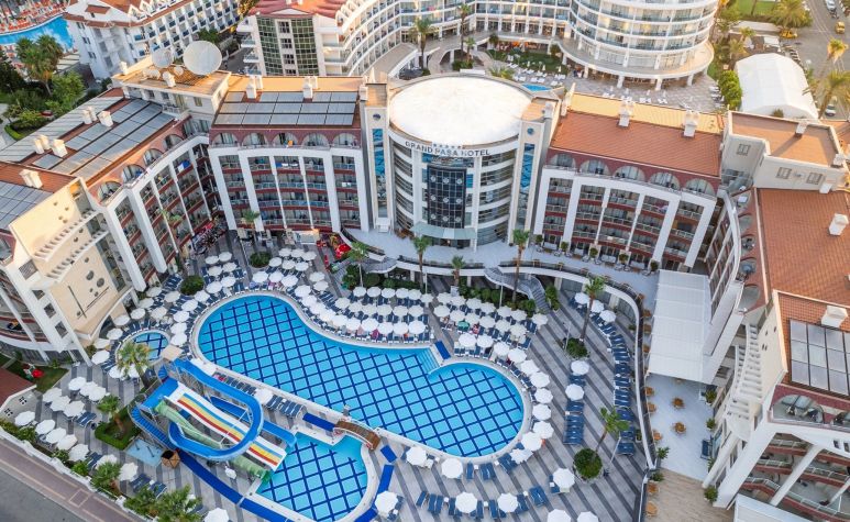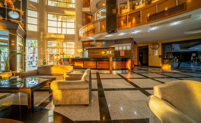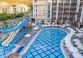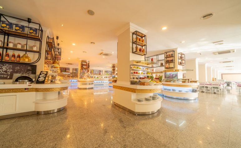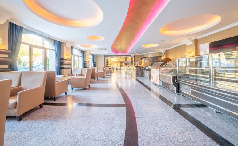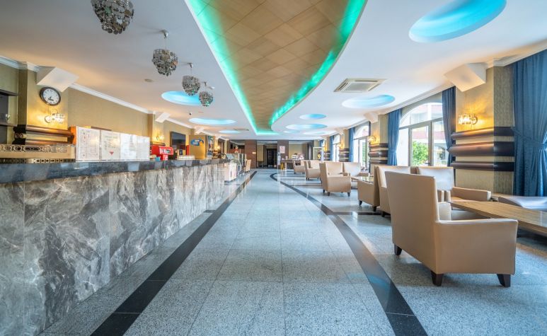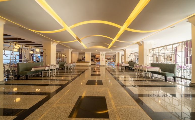 Основен ресторант, 3 бара, открит басейн, закрит басейн, детски басейн, водна пързалка, СПА център, детски клуб, аеробика, билярд, дискотека, анимация, магазини, конферентни зали. Безплатни услуги: сауна ,турска баня, фитнес, WI-FI интернет в лоби, тенис на маса. Платени услуги: билярд, интернет кафе, пералня, лекар, детегледачка ,Спа и Уелнес център Плаж: Градски плаж - Чадъри и шезлонги при басейна – безплатни, а на плажа – платени.