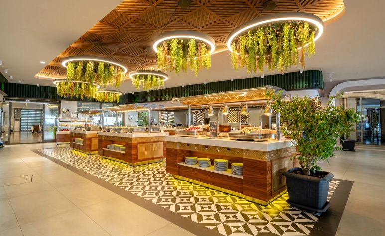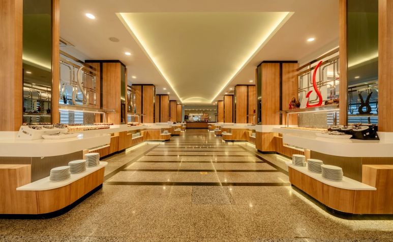 Основен ресторант, а-ла-карт ресторан (платен с предварителна резервация, съгласно концепцията на хотела) 4 бара, дискотека, 2 открити басейна, един от които с водна пързалка и 1 закрит басейн, магазини, СПА център, конферентни зали, паркинг.