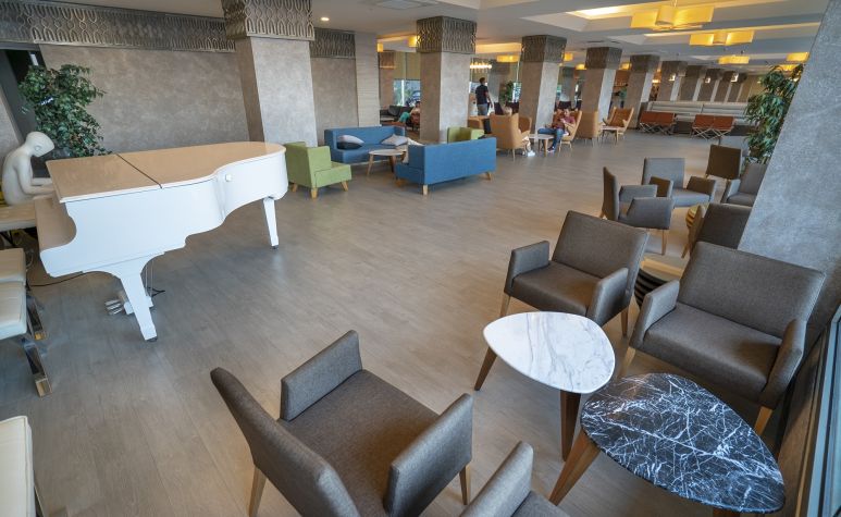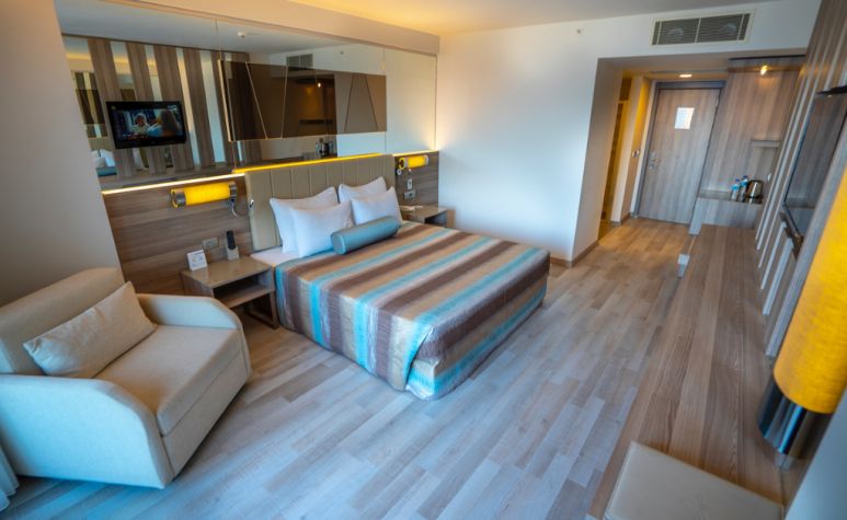 Основен ресторант, 2 а-ла-карт ресторанта (с предварителна резервация), 5 бара, 1 открит и 1 закрит басейн, водни пързалки, магазини, СПА център, конферентна зала, паркинг. За децата: Детско меню, 2 детски басейна, детска площадка, мини клуб (4-12 г.), мини дискотека. Безплатни услуги: Сауна, турска баня, парна баня, джакузи, фитнес, аеробика, тенис на маса, софт анимация. Платени услуги: Масаж, фризьор, детегледачка, магазини, игрални автомати, моторни водни спортове. ПЛАЖ: Собствен, пясъчен – чадъри и шезлонги на плажа и при басейна – безплатно, плажни кърпи – срещу депозит.