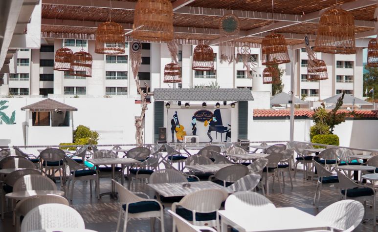 Основен ресторант, 2 бара, 4  басейнa (релакс басейн, детски басейн, за възтастни и басейна с водна пързалка), детски клуб, детска площадка, магазини, паркинг.