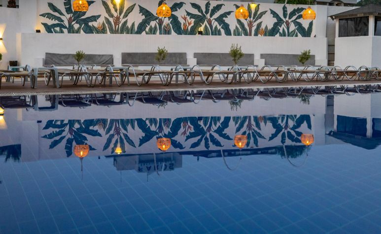 Основен ресторант, 2 бара, 4 басейнa (релакс басейн, детски басейн, за възтастни и басейна с водна пързалка), детски клуб, детска площадка, магазини, паркинг.