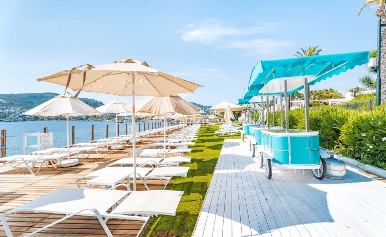 Намира се на 48 км от летище Бодрум, на 20 км от центъра на Бодрум, на 500 м от района на Гюндоан, на брега на морето. Построен 2004 г., на обща площ от 30 000 м². Реновиран 2024 г.