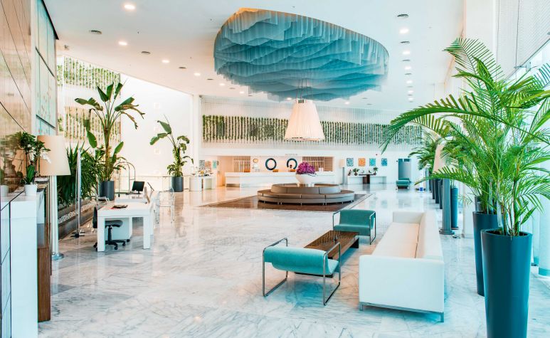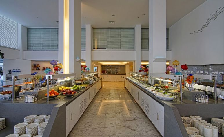 Основен ресторант, 2 а-ла-карт ресторанта (рибен и стек- срещу заплащане/ с предварителна резервация, съгласно концепцията на хотела/ 1 безплатно посещение на рибния ресторант при минимум 5 нощувки), сладкарница, 4 бара (един от които работи 24 часа), Starbucks Corner, Nespresso Corner, външен и вътрешен басейн, детски аква парк, СПА център, фитнес, лека анимация, тенис корт, конферентни зали, интернет, паркинг.