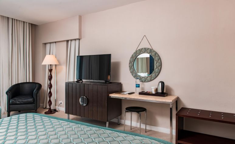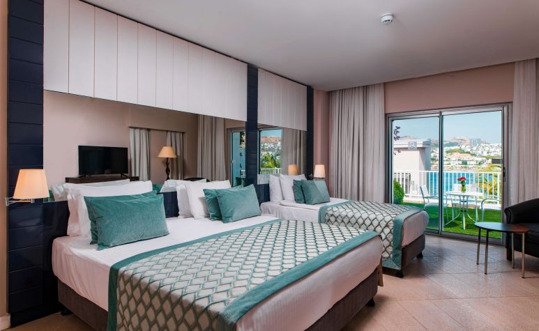 Хотелът разполага с общо 202 стаи, от които  Main Building Deluxe Sea View/ Garden View  (28-30 m²), Main Building Deluxe Wood Teracce Room (28-30 m²), Main Building Senior Suite (72 m²), Premium Garden View Room (28-30 m²), Premium Sea View Room (28-30 m²), Premium Garden Terrace Room (28-30 m²), Premium Quatro Room (35 m²), Premium Suite (60 m², състои се от спалня и дневна).