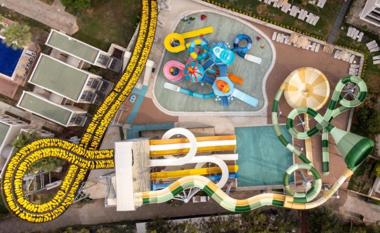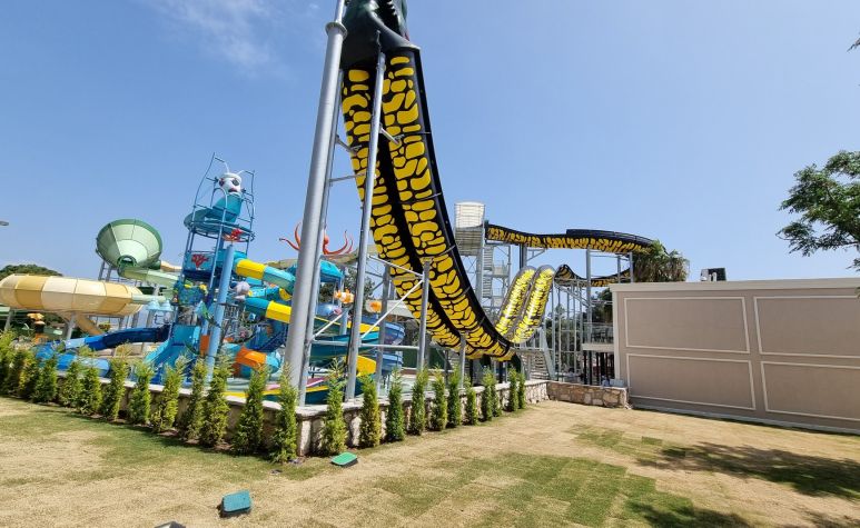 На разположение на гостите на хотела е аквапарк, който разполага с 2 басейна, 7 водни пързалки за възрастни, 5 водни пързалки за деца, центрофуга и водни съоръжения за най-малките.