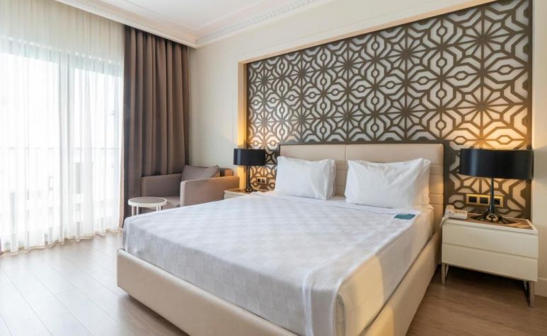 Всички стаи са оборудвани с климатик, телевизор, телефон, баня с душ/вана, сешоар, мини бар (безплатно ежедневно зареждане с безалкохолни напитки и вода), сет за кафе/чай, сейф (безплатен), Wi-Fi, балкон. Почистване на стаите - всеки ден, смяна на спалното бельо и кърпите - 2 пъти в седмицата.