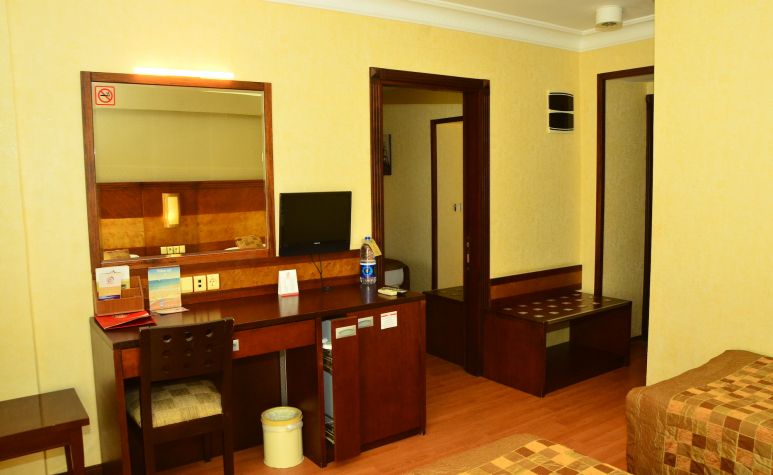 Хотелът разполага с общо 246 стаи, от които 88 стандартни с изглед градина (24 м²), 89 стандартни с изглед море (24 м²), 17 фамилни стаи (свързани стаи - 48 м²), 22 супериор стаи (26 м²), 8 промо стаи (20 м²) и 2 суита. Всички стаи са оборудвани с климатик, телевизор, телефон, баня с душ/вана, сешоар, мини бар (платен), сейф (безплатен). Почистване на стаите - всеки ден, смяна на спалното бельо и кърпите - 2 пъти в седмицата.