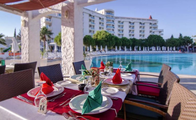 All inclusive – закуска, обяд и вечеря, междинни хранения, местни алкохолни и безалкохолни напитки - без лимит (съгласно концепцията на хотела).