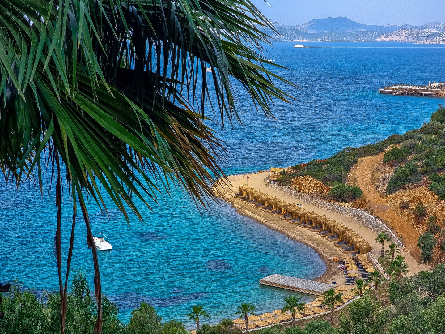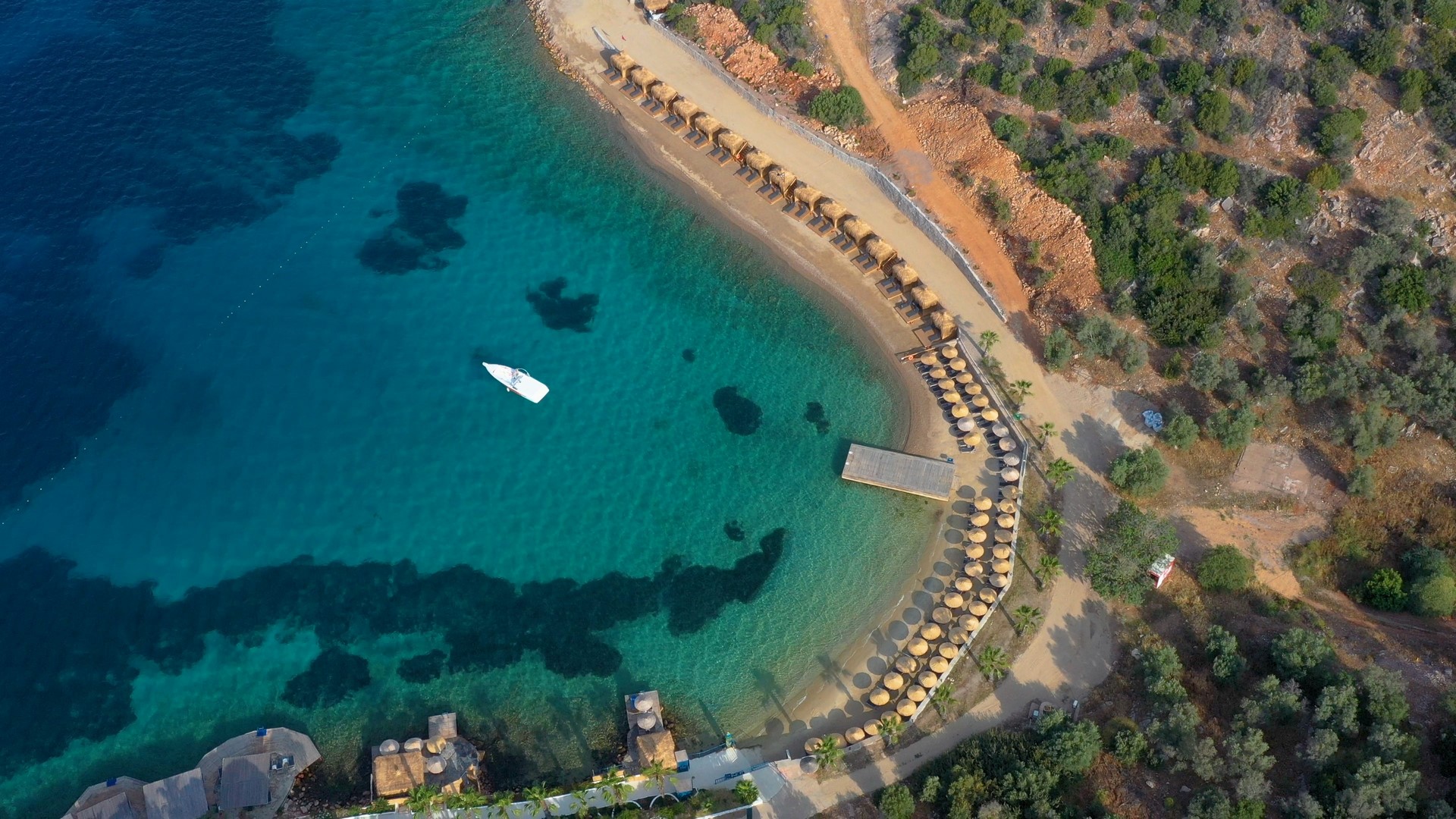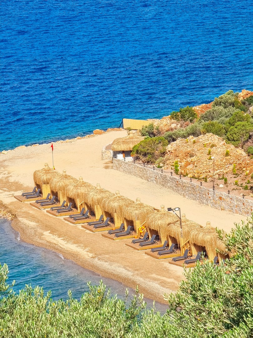 Собствен пясъчен чакълест плаж и платформа - чадъри, шезлонги, плажни кърпи и матраци на плажа и при басейна - безплатно.