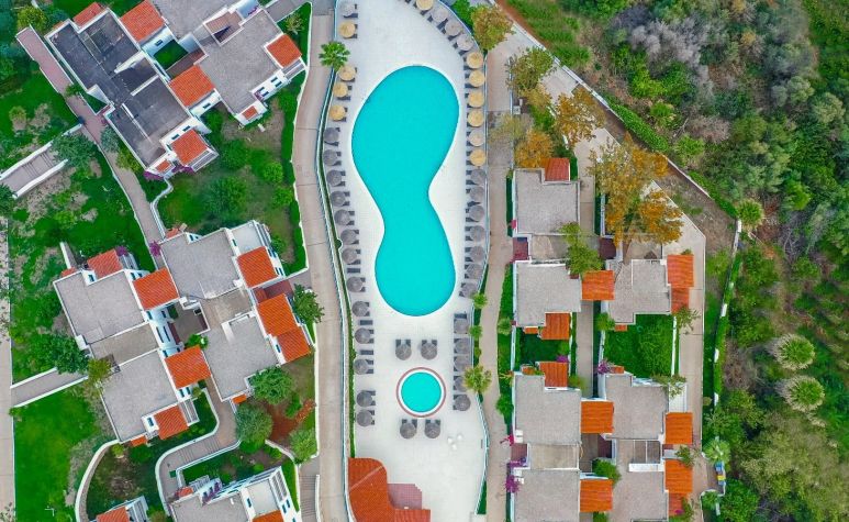 Хотелът се намира на 35 км. от летище Милас, на 4 км. от центъра на Бодрум, в района на Ичмелер, на брега на морето. Построен през 2002 г. с обща площ от 124 000 м2, последно частично реновиран през 2022/23 г.