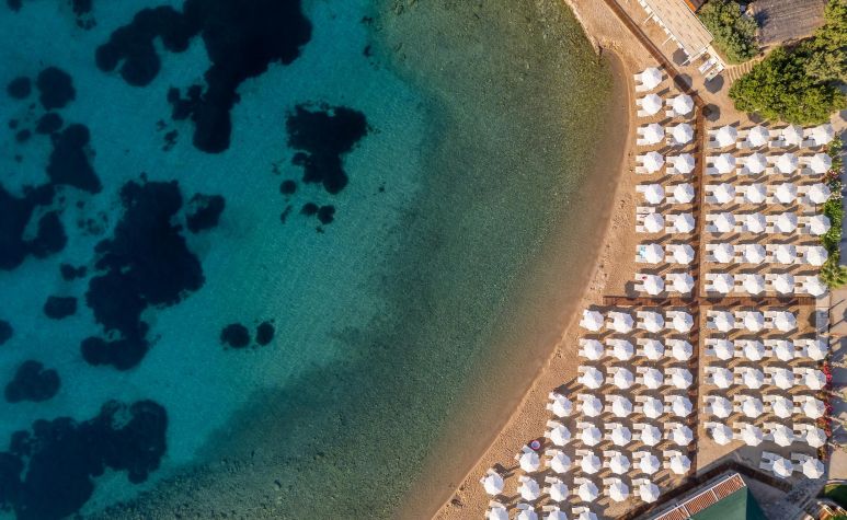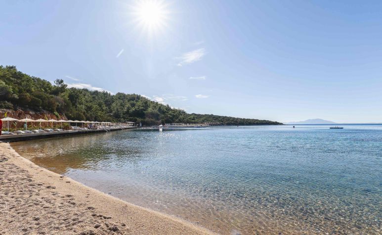 Собствен, пясъчен, платформа. Чадъри, шезлонги и плажни кърпи на плажа и при басейна – безплатно.